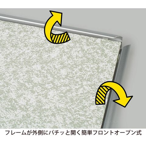 画期的な「パチッ」とフロントオープン式(4辺開閉式)なので、前側から簡単に額装・中身を交換できます。