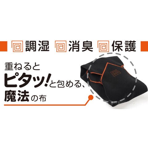 「包(つつむ) ラップクッション 調湿マジック」は、包むことでキズやほこりから機材を保護するだけでなく、湿度の調整や消臭もできるラッピングクロスです。表生地と裏生地は重ねるだけでくっつく特性を持っていますので、ゴムなどで縛る必要がありません。
