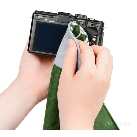 液晶画面や機材のお手入れに使えるクリーニングクロス生地を一部に採用