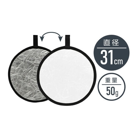 「Kenko Rレフ S/W KRR-S/W31-II」は、表面が銀色、裏面が白色リバーシブル仕様となっている、直径31cmの丸形のレフ板です。