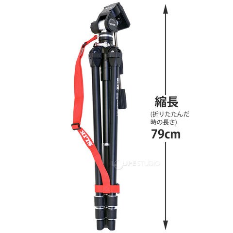 三脚の持ち運びに便利な「赤ストラップ」が付属(取り外し可能)