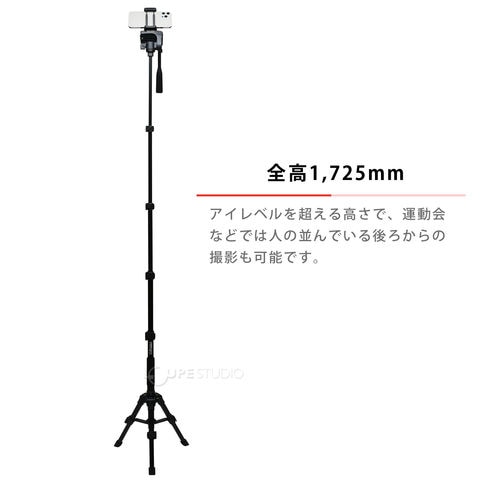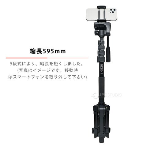 自立脚付き一脚「スタンドポッドGX5」に、スマートフォン対応クイックシューを装備。安定感の高い自立一脚で、ビデオカメラやカメラに加え、スマートフォンにも対応します。雲台は上下・左右・タテ位置/ヨコ位置がそれぞれ調整できる3ウェイ式。分離してミニ三脚、一脚としても使える多機能タイプ(雲台部分は共用)です。脚パイプにウレタングリップ装備。ケース付き。