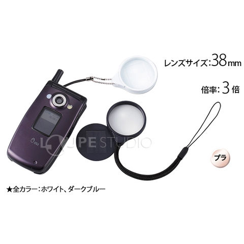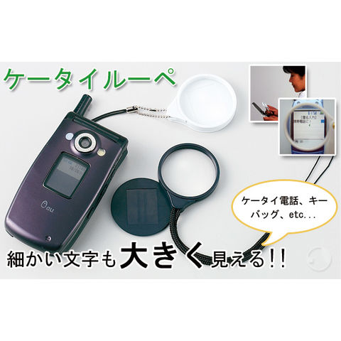 携帯電話用のストラップ付き携帯用ルーペです。携帯電話の画面もこれさえあれば