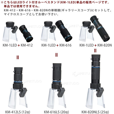 ※こちらはLEDライト付きルーペスタンド単品となります。単品では使えません。KM-412・KM-616・KM-820Nの単眼鏡(ギャラリースコープ)にセットして、マイクロスコープとしてお使い下さい。