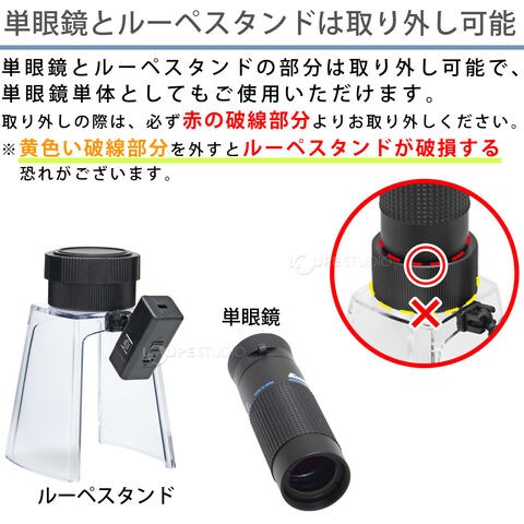 遠くのものだけでなく近くのものもはっきり見られ、高輝度LEDライト付マイクロレンズスタンドを使えば顕微鏡としても利用できる1台3役の優れた単眼鏡です。