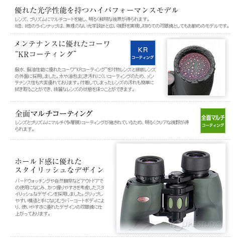 • 全てのレンズ、プリズム面に光のロスを抑える「マルチ(多層膜)コーティング」を採用
