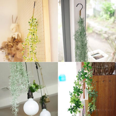 - [CT触媒 人工観葉植物」、可愛いフックにぶら下がったフェイクグリーン。お部屋に合わせやすいインテリア雑貨です