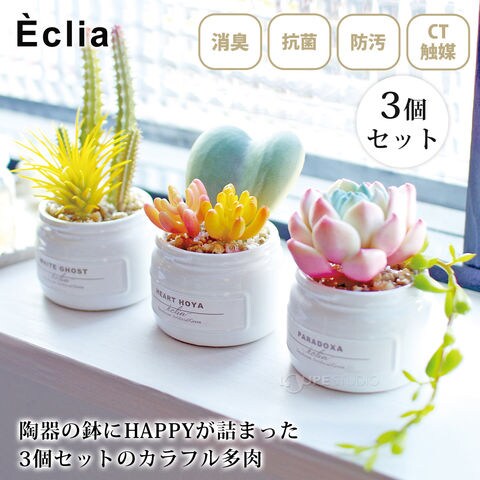 観葉植物 人工 フェイクグリーン ミニ おしゃれ 消臭アーティフィシャルグリーン エクリア 多肉3個セット インテリア 雑貨 かわいい 鉢植 置物 部屋 クリスマスプレゼント クリスマス