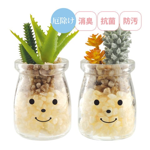 - ガラスのビンにキュートな顔が描かれていて、クリーンな空気を届けるCT触媒加工済
