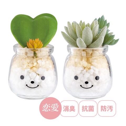 - ガラスのビンにキュートな顔が描かれていて、クリーンな空気を届けるCT触媒加工済