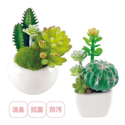 • 小さなサボテンやコケなどを寄せ植えしたキュートな消臭アーティフィシャルグリーン。