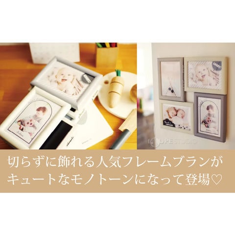 可愛すぎないモノトーンカラーで、子ども部屋だけでなくリビングにもスッキリと飾れます。今までになかったインテリア重視のベビーフレームはギフトにもオススメ!