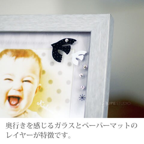 可愛すぎないモノトーンカラーで、子ども部屋だけでなくリビングにもスッキリと飾れます。今までになかったインテリア重視のベビーフレームはギフトにもオススメ!