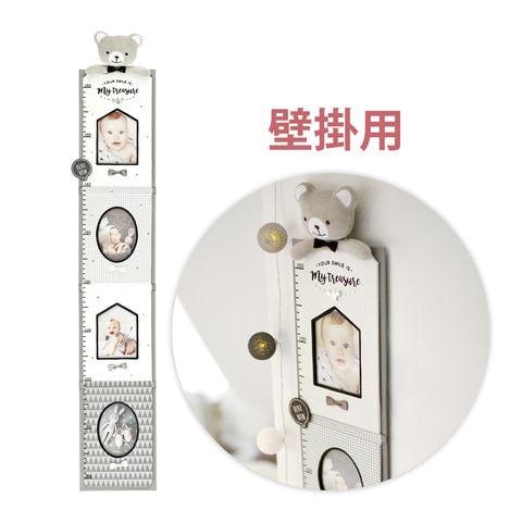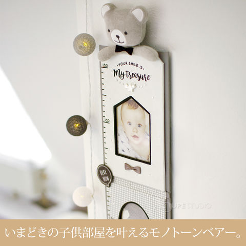 - モノトーンベアーが成長を見守るベビーハイトメーターフレーム。