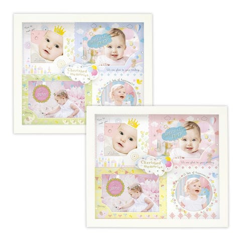 - イラスト・ラインストーン・ガラスに施されたプリントが層になり、中に入れる写真を彩ります。