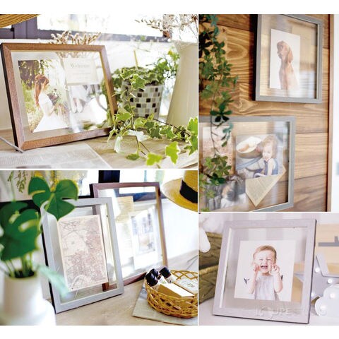3色の配色を施したフレームやスマートなワイヤーイーゼルなど、シンプルな中にもこだわりの光るデザインが魅力のフレーム。フレームの枠内であれば、サイズや枚数を気にせずレイアウトすることができます。写真の他にも、お子様の絵やお気に入りのアートを飾ったりと、飾り方を自由に楽しむことができます。そのまま飾っても素敵なアートポスター入りもポイントです。