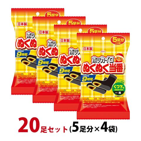 カイロ 貼る 足用 ホッカイロ ぬくぬく当番 くつ下用 20足セット(5足分×4袋) 使い捨て 靴下に貼る 日本製 【使用期限:2026年4月】