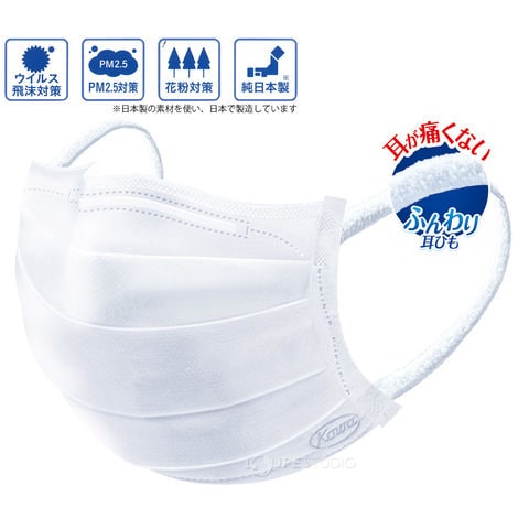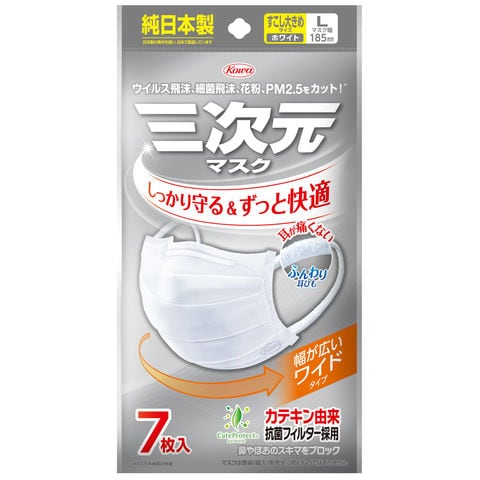 三次元マスク すこし大きめLサイズ ホワイト 7枚 不織布 日本製 使い捨て サージカルマスク 耳が痛くないスペック