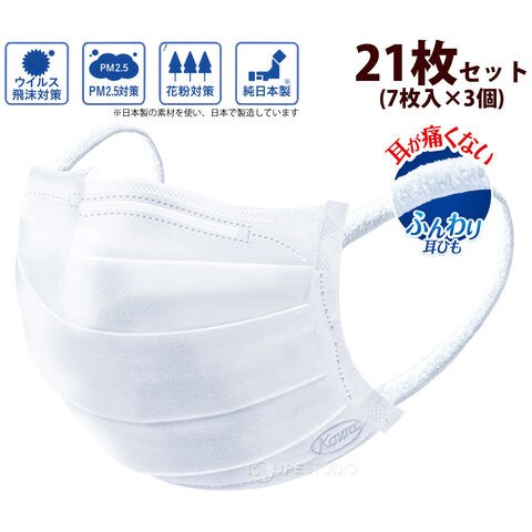 三次元マスク すこし大きめLサイズ ホワイト 21枚セット[7枚入×3個] 不織布 日本製 使い捨て サージカルマスク 耳が痛くないスペック
