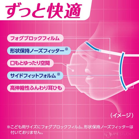 (こども用サイズに形状保持ノーズフィッターは付いておりません)