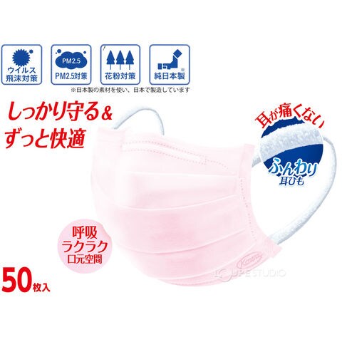 三次元マスク 小さめSサイズ ピンク 50枚 不織布 日本製 使い捨て サージカルマスク 耳が痛くないスペック