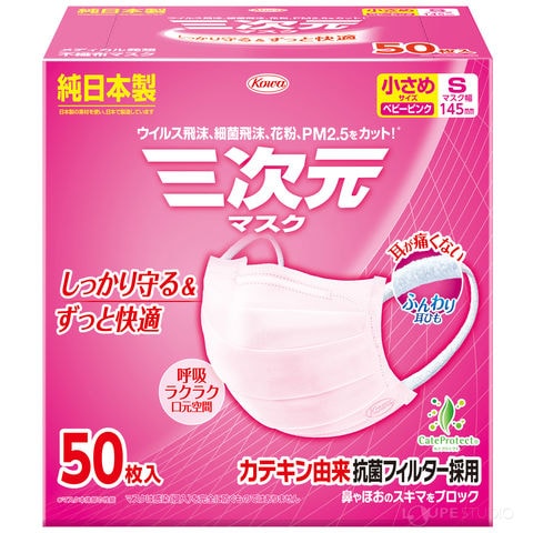 三次元マスク 小さめSサイズ ピンク 50枚 不織布 日本製 使い捨て サージカルマスク 耳が痛くない