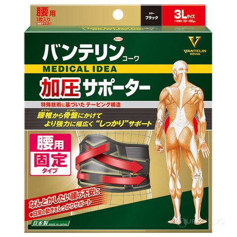 バンテリン サポーター 腰用 しっかり加圧 ブラック 3L 医療用 でも使われる安心の日本製スペック