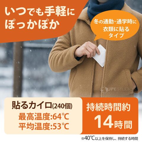 - 冬の通勤・通学時にいつでも手軽にぽっかぽか。