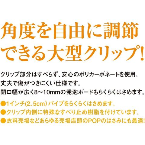 - 店舗はもちろん、あらゆる売場店頭のPOPのはさみにも最適です。