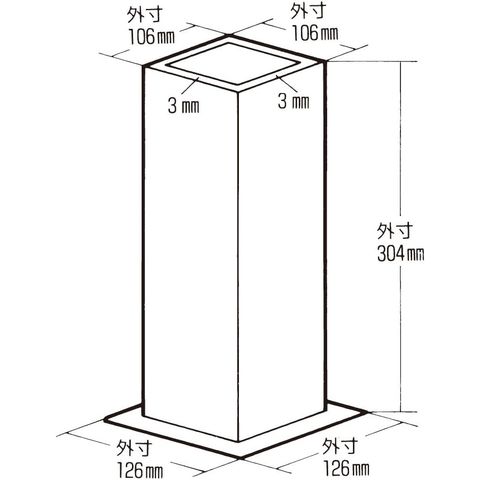 | 商品サイズ | 幅100(mm)×長100(mm)×高300(mm)×厚3(mm) |