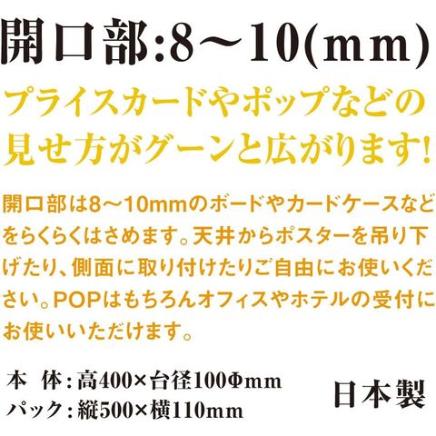 - 天井からポスターを吊り下げたり、側面に取り付けたりご自由にお使いください