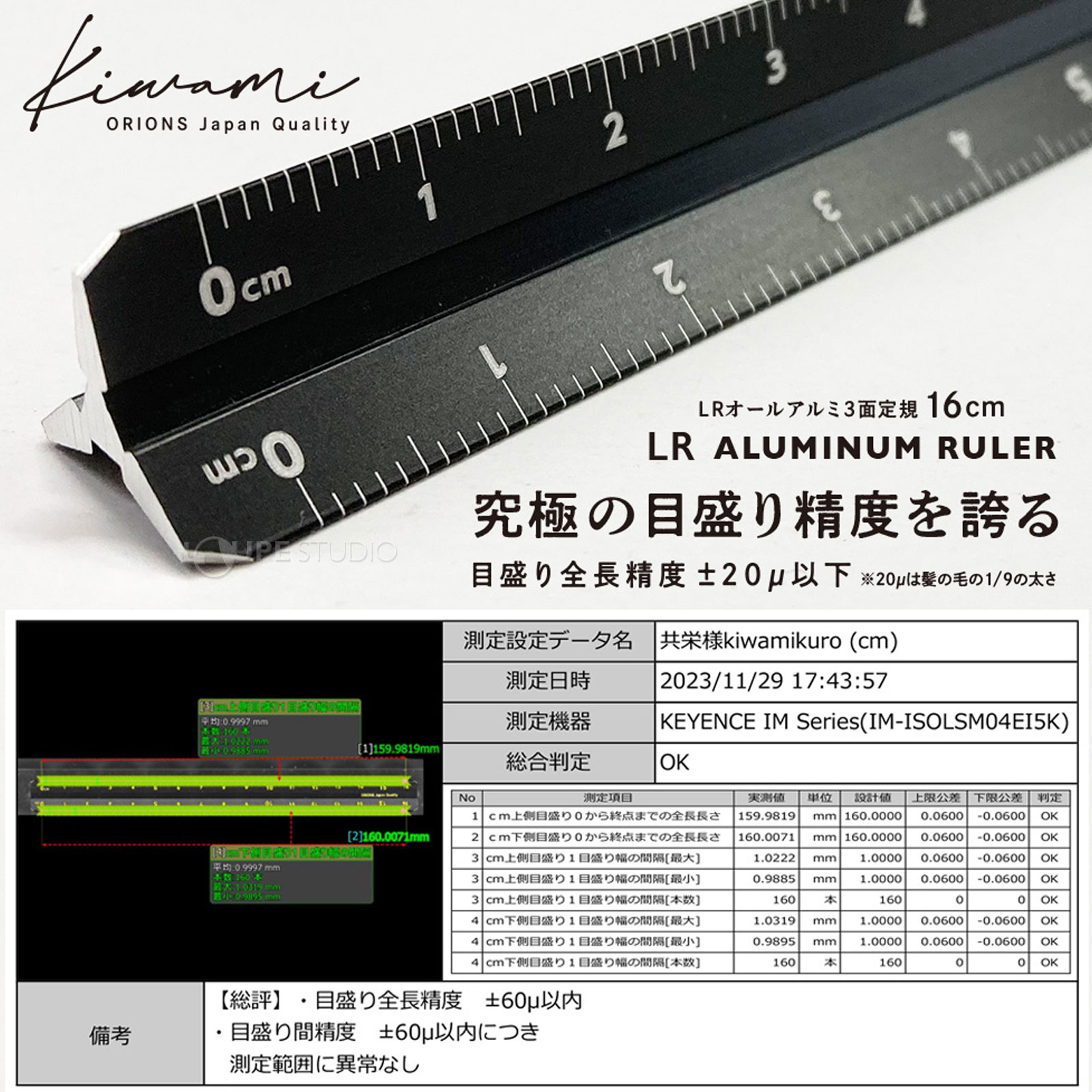 - 目盛り(16cm)全長精度±20μ以下の高精度定規