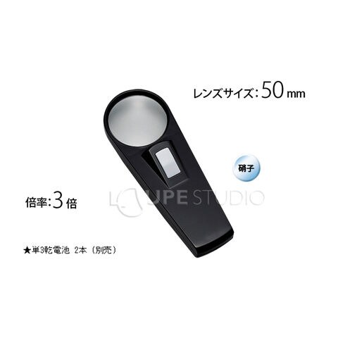 プラスチック枠にガラスレンズを使用したライトルーペです。スイッチを押している間、ライトがつきます。