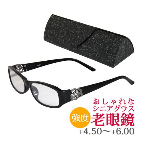 老眼鏡 バラ 柄 ローズ 606BK ブラック リーディンググラス シニアグラス 女性 強度 おしゃれ クリスマスプレゼント クリスマススペック