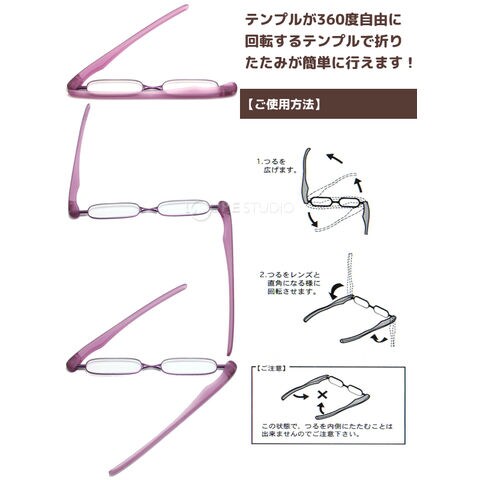 360°自由に回転するテンプルで折りたたみが簡単に行えます。