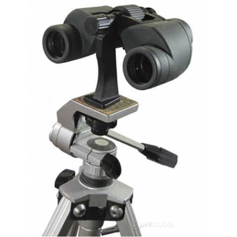 双眼鏡をカメラ三脚に取り付けるためのアダプターです。長時間の観望には欠かせません。像が安定すると共に疲労が軽減されます。