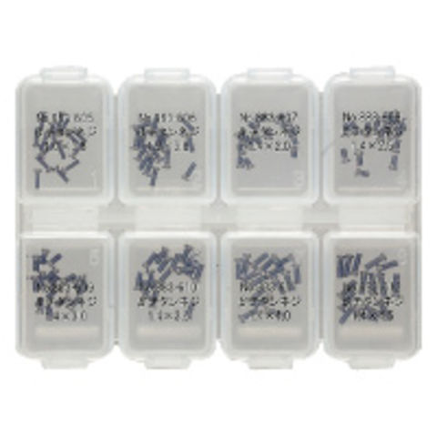 | セット内容 | No.883-605 頭径2.0mm×太さ1.0×全長4.4mm(首下3.8mm+0.6mm) No.883-606 頭径2.0mm×太さ1.2×全長4.4mm(首下3.8mm+0.6mm) No.883-607 頭径2.0mm×太さ1.4×全長2.6mm(首下2.0mm+0.6mm) No.883-608 頭径2.0mm×太さ1.4×全長3.1mm(首下2.5mm+0.6mm) No.883-609 頭径2.0mm×太さ1.4×全長3.6mm(首下3.0mm+0.6mm) No.883-610 頭径2.0mm×太さ1.4×全長4.1mm(首下3.5mm+0.6mm) No.883-611 頭径2.0mm×太さ1.4×全長4.6mm(首下4.0mm+0.6mm) No.883-612 頭径2.0mm×太さ1.4×全長5.1mm(首下4.5mm+0.6mm) |