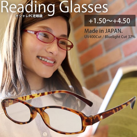 老眼鏡 シニアグラス リーディンググラス 日本製 (スワロフスキー石入り) デミ ブルーライトカット 軽量 おしゃれ PCメガネ 紫外線カット99.9% 女性用 カジュアル クリスマスプレゼント クリスマス