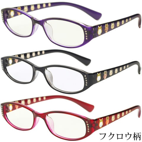 シニアグラス 女性 おしゃれ 日本製 老眼鏡 リーディンググラス 弱度 強度 単焦点クリア 縁起物 七フクロウ柄 ふくろうスペック