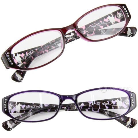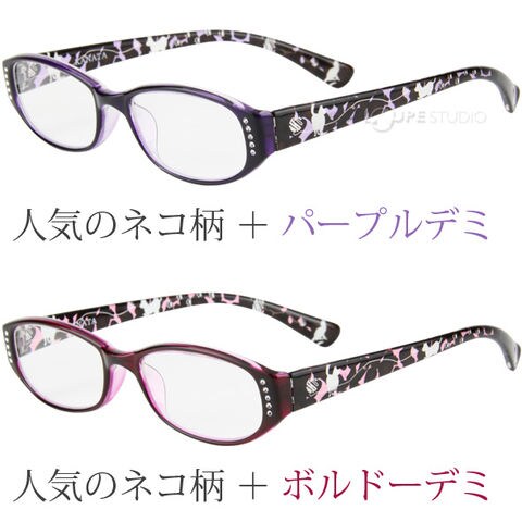 シニアグラス 女性 おしゃれ ネコ柄 ねこ 猫 日本製 老眼鏡 リーディンググラス 弱度 強度 単焦点クリア パープルデミ ボルドーデミ 軽量 コンパクトスペック