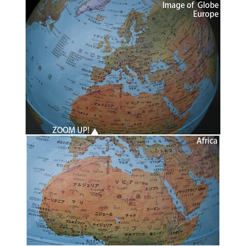 【注意】 この地球儀は表面に凹凸があるタイプではありません。球面はツルツルしています。(画像では「山脈部分がデコボコした球」と見える事があるようですが、お間違いのないようにお願いします。)
