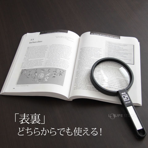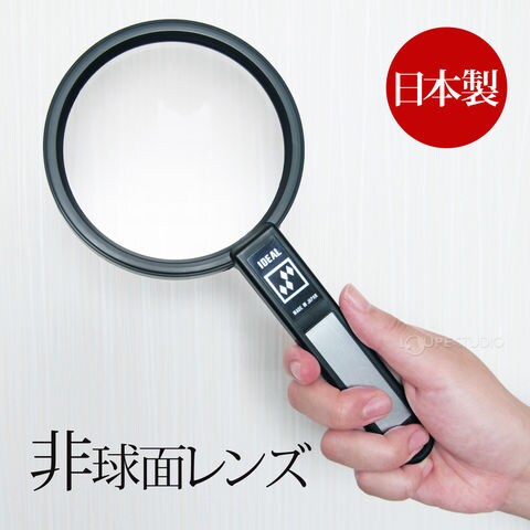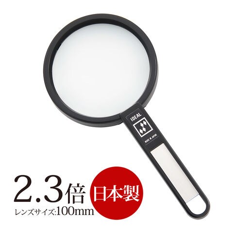 非球面アクリルレンズを使用した手持ちルーペ(天眼鏡)です。軽くて丈夫なので扱いやすい!レンズサイズは 100mm 。レンズ径が約10cmと大きいので、視野を広く保つことができます。