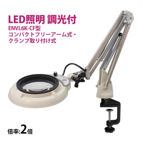 フルスペクトル LED 照明拡大鏡 コンパクトフリーアーム式・クランプ取り付け式 2倍 ENVL6K-CF×2 ルーペ 検品 手芸 検査 スタンドルーペ オーツカ光学スペック