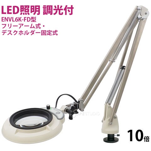 フルスペクトル LED 照明拡大鏡 フリーアーム式・デスクホルダー固定式 10倍 ENVL6K-FD×10 ルーペ 検品 手芸 検査 スタンドルーペ オーツカ光学