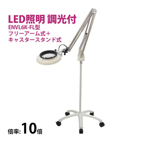 フルスペクトル LED 照明拡大鏡 フリーアーム式+キャスタースタンド式 10倍 ENVL6K-FL×10 ルーペ 検品 手芸 検査 スタンドルーペ オーツカ光学