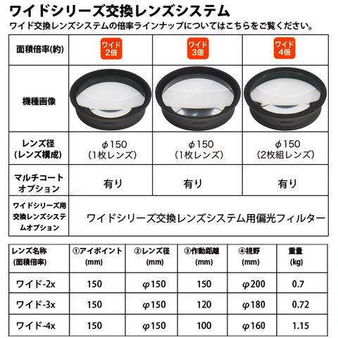 - 新設計の「マグナワイドレンズシステム」は、Φ150mmの大口径レンズにより、標準型レンズ(Φ130mm)と比較して25%大きい視野を確保。※旧モデルのLSKシリーズ用レンズ「ワイドレンズ」との互換性はございません。
