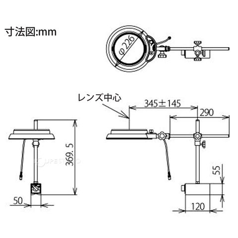 - また、オーツカ光学製照明拡大鏡の中で1番照度が高く(レンズ中心直下150mmで10,500Lx※)、かつ無段階で0%まで調光が可能なので、様々な対象物に合わせて最も適した照度を設定する事が可能です。