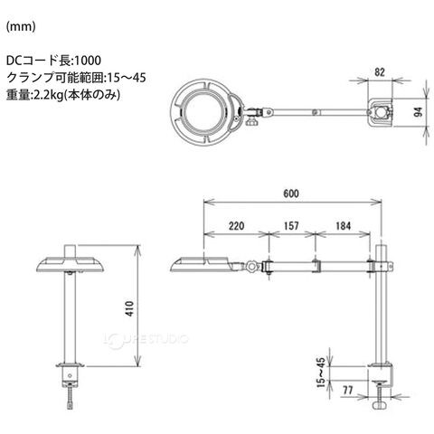 スタンドルーペ SKKL-SA 2XAR 2倍 LED照明拡大鏡 スイングアーム式 クランプ取付式 虫眼鏡 検品 両手が使える 工業用 オーツカ光学スペック