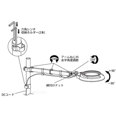 スタンドルーペ SKKL-SA 3XAR 3倍 LED照明拡大鏡 スイングアーム式 クランプ取付式 虫眼鏡 検品 両手が使える 工業用 オーツカ光学スペック
