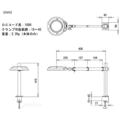 スタンドルーペ用 ENVL-SA レンズ無 LED照明拡大鏡 スイングアーム式 クランプ取付式 オーツカ光学スペック